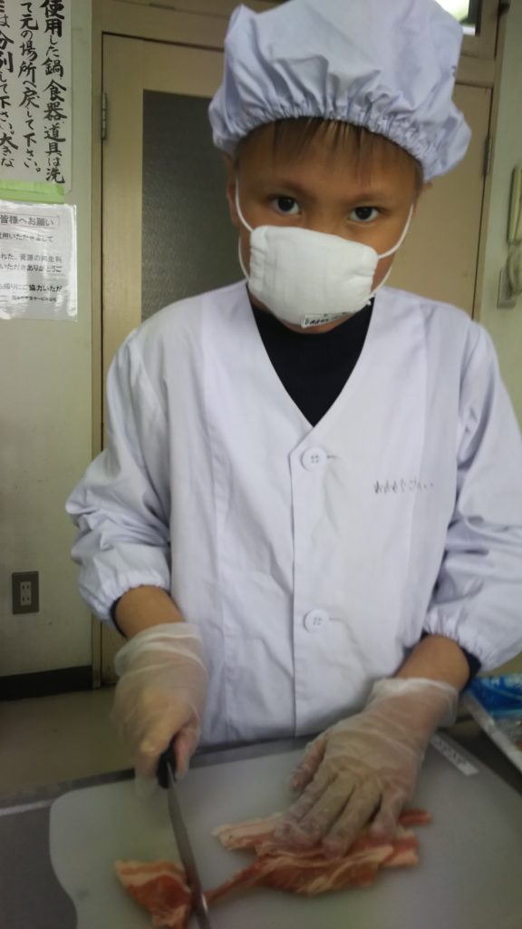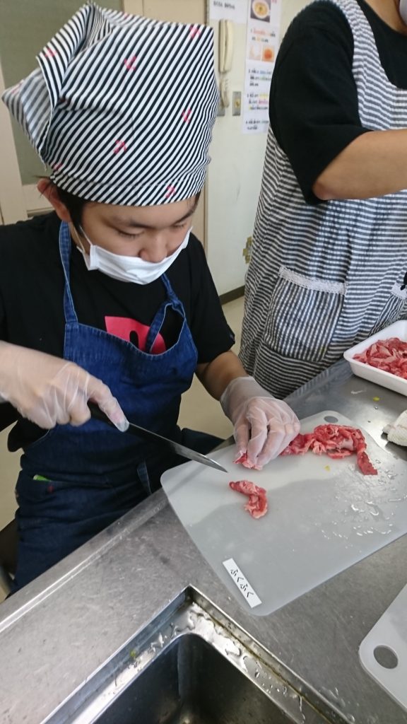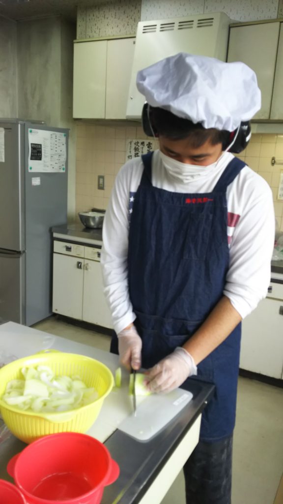 クッキングチームでは、安全をまず第一に活動しています。包丁や火を扱うので安全面に注意しています。クッキングチームでは、地域福祉センターの調理室を使用しています。いつもと違う施設での調理は、みんな一層集中して行なえています。