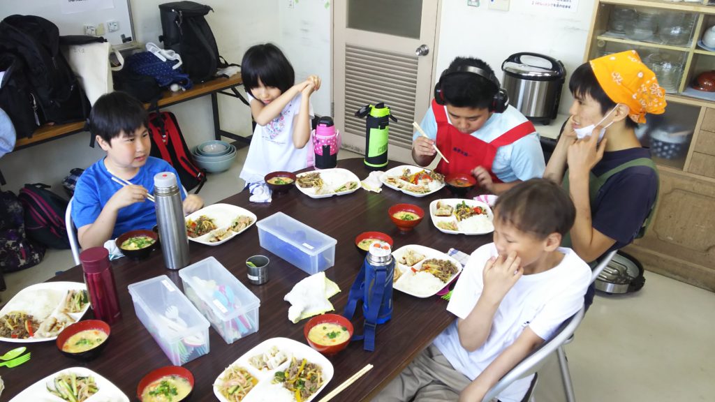 食べ終わったあとは、お皿洗いや掃除などの片付けも、みんなで行います。