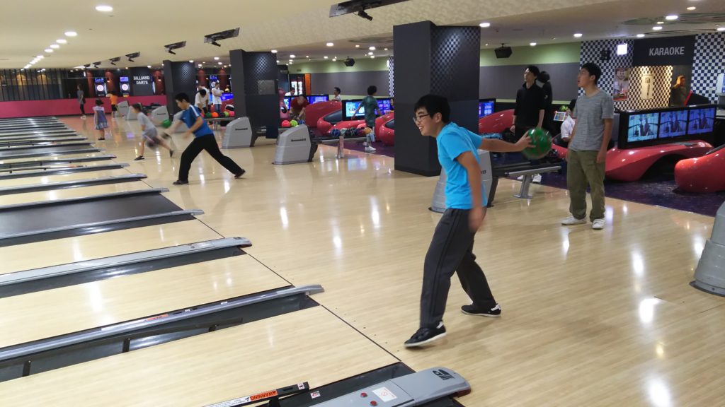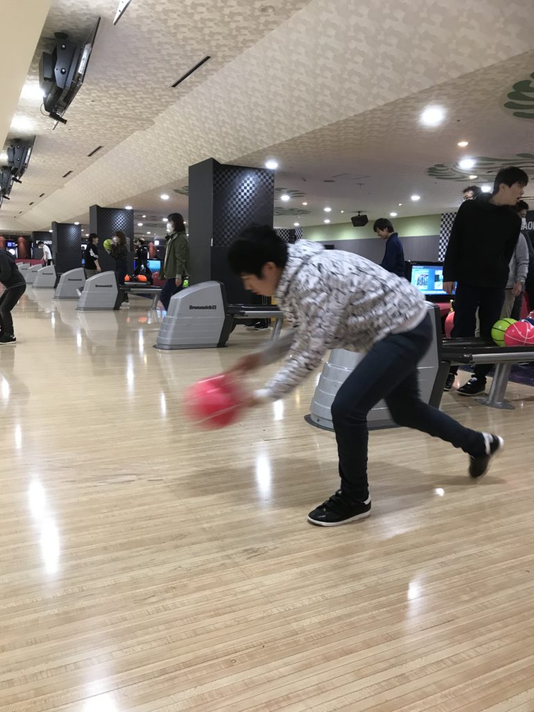 ボーリングは今年度、人気があり月2週行なっています。朝の会でその日の目標をレーンごとに集まって発表しあい、帰りの会ではどうだったかなど、振り返りの機会を作っています。