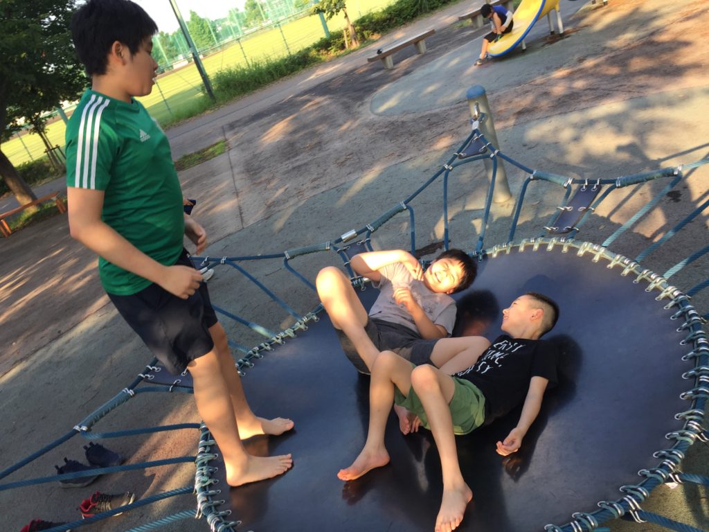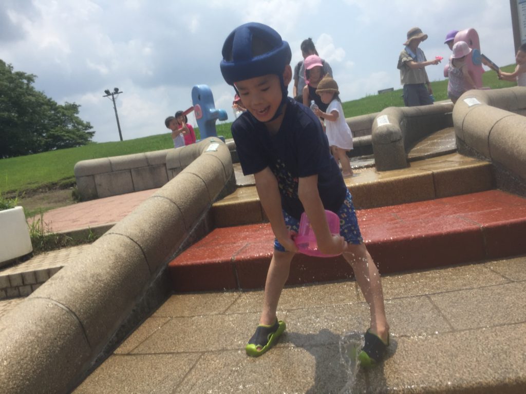 恒例の水遊びをしに公園へ出かけたり、プールへ泳ぎに行っています。