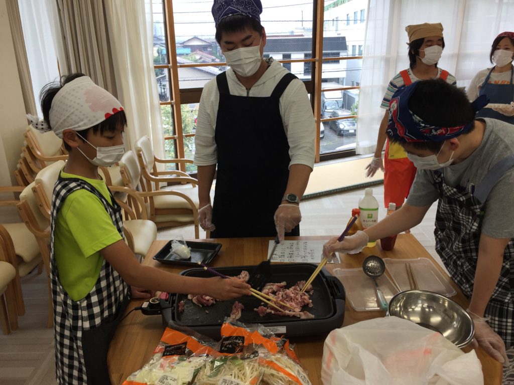 外は暑いので、たこ焼きを焼いたり、お昼ご飯をみんなでつくったり、