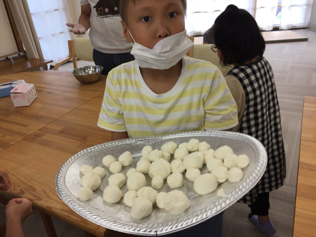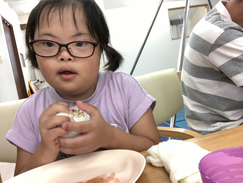 ちなみに Aちゃんが 持っているのは、お月見おにぎりです。