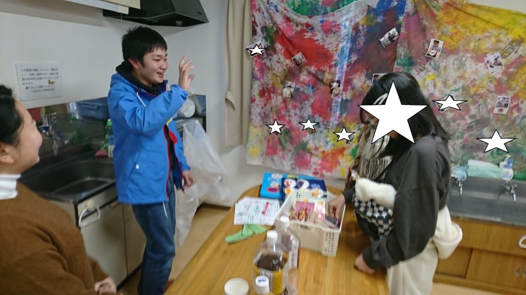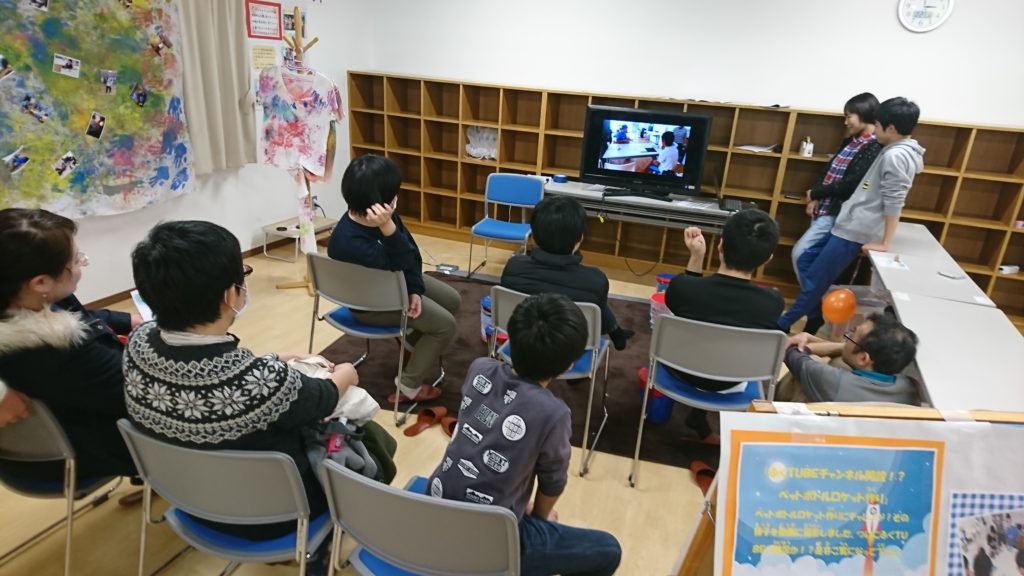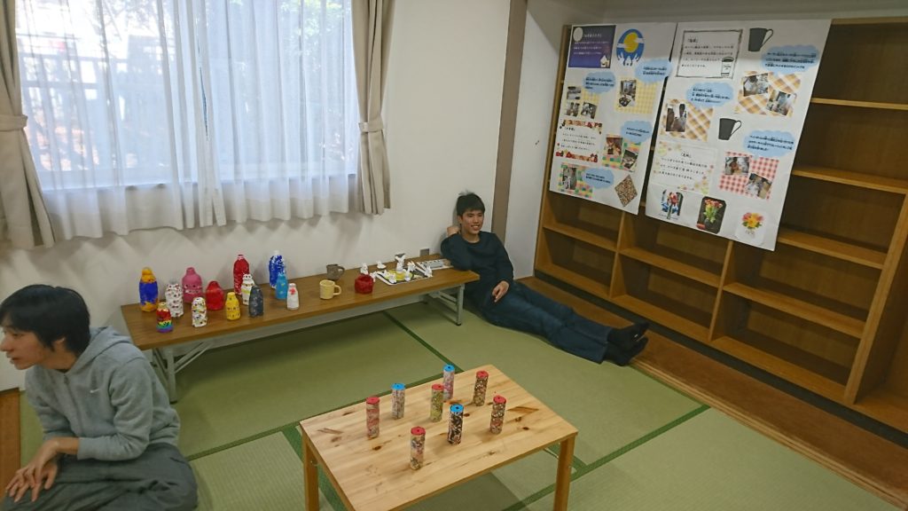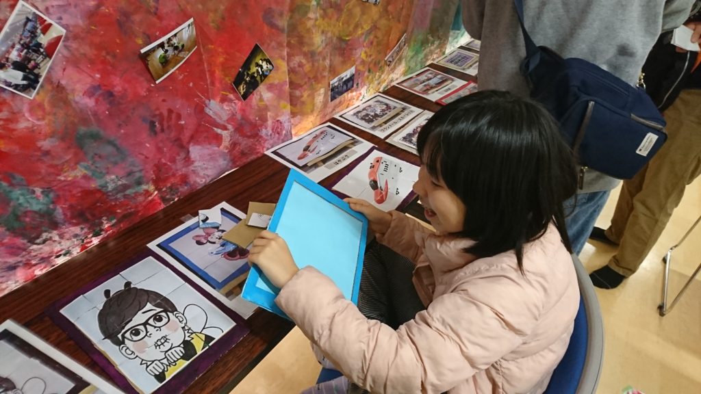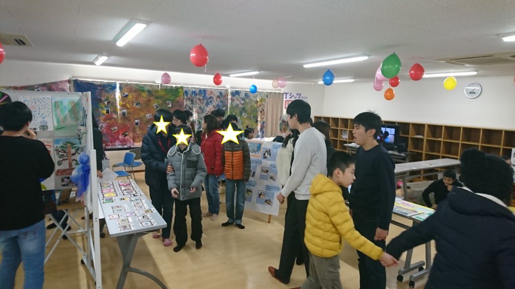 そして、昼食後に、いよいよ、作品展の開始です。始めはスタッフも子どもも“お客さん来るかな…”と不安な事もありました。中には「来ないよー」と声を出す子どももいました。