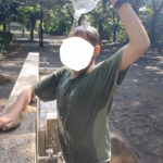 とにかく水がかかるのが大好きなO君。自分でかけちゃいます!