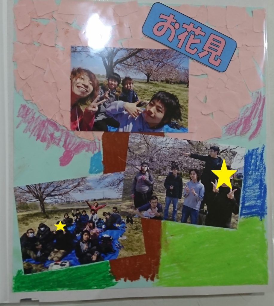4月のコーナーではお花見ページ、5月のコーナーでは母の日ページなど、ただ写真を貼るだけでなく、制作作業も取り入れたページもあります。