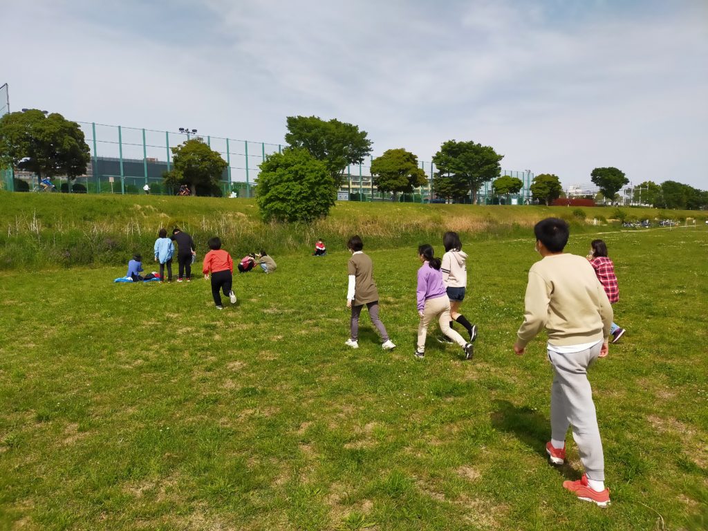 別日は、多摩川まで歩き、野球をしたりサッカーをしたり、子どももスタッフも本気対決!