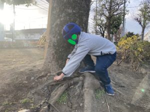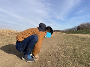 多摩川の河原へお散歩へ行き、アリが歩く姿をじっと見つめたり、