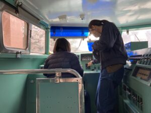 運転席では、レバーやさまざまなボタンを自由に操作することが出来ます。