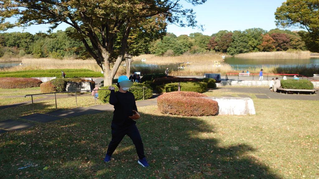 外遊びキャッチボールの様子。「いっくよぉ~!」