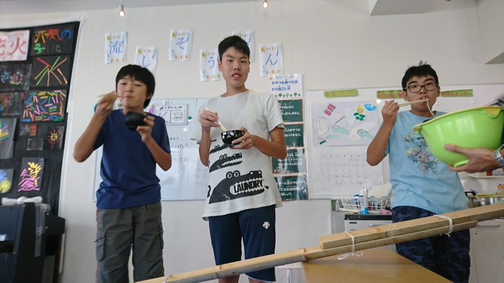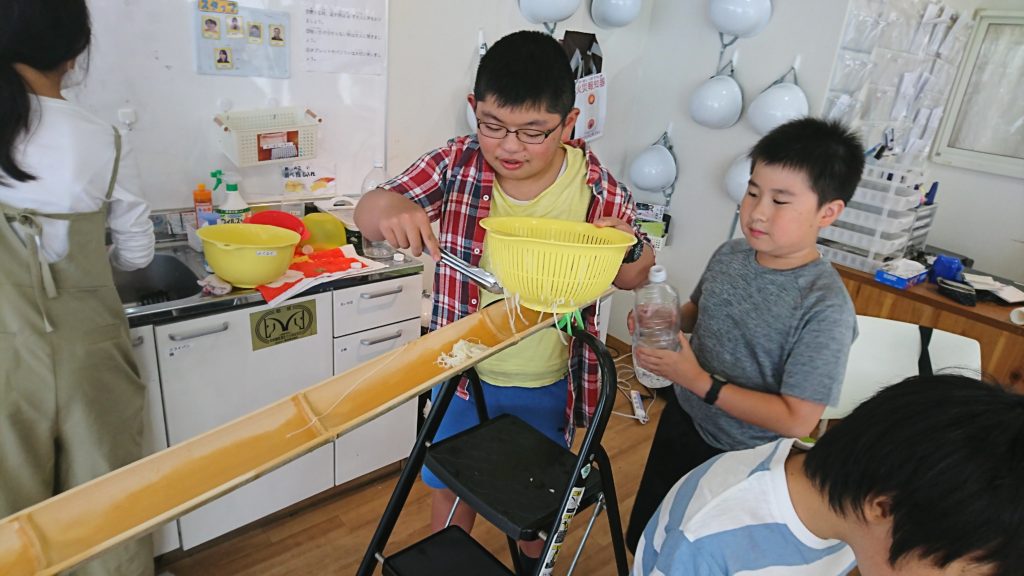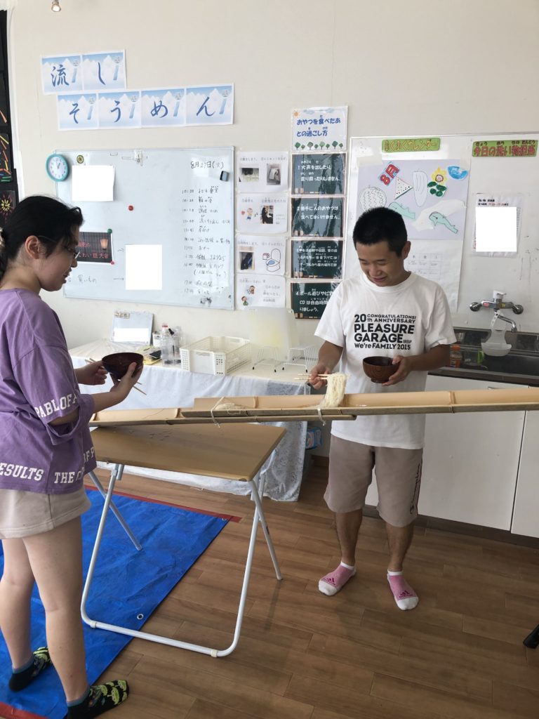 ふくふくでは、去年に引き続き今年も流しそうめんを行いました。