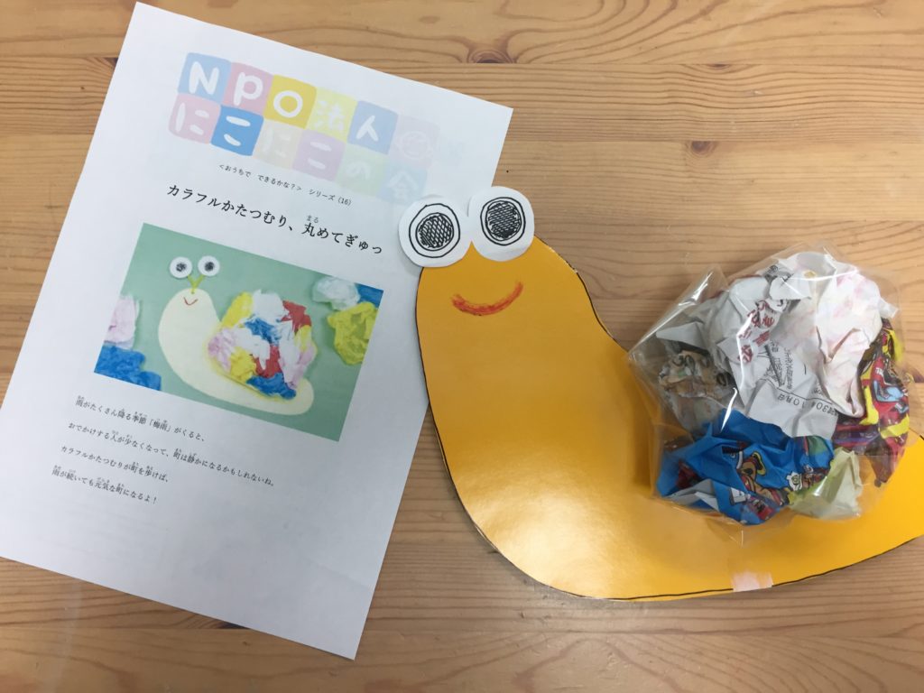 写真は、もうすぐ梅雨がやってくるのでカタツムリをつくりました。