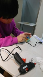 火傷に充分気を付けながら、おはじきなどをくっつけ仕上げです。