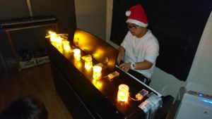 音楽が得意な子にはイルミネーションの中素敵なピアノを演奏してもらったり。