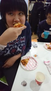 みんなのリクエストを実現した特別おやつのピザパーティー。お持ち帰りで半額って本当に素敵な制度だと思っています!(^o^)