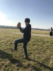 「右足だよ、そっちは左足」などの周囲からの助言を聞きながら頑張って身体を操ります。