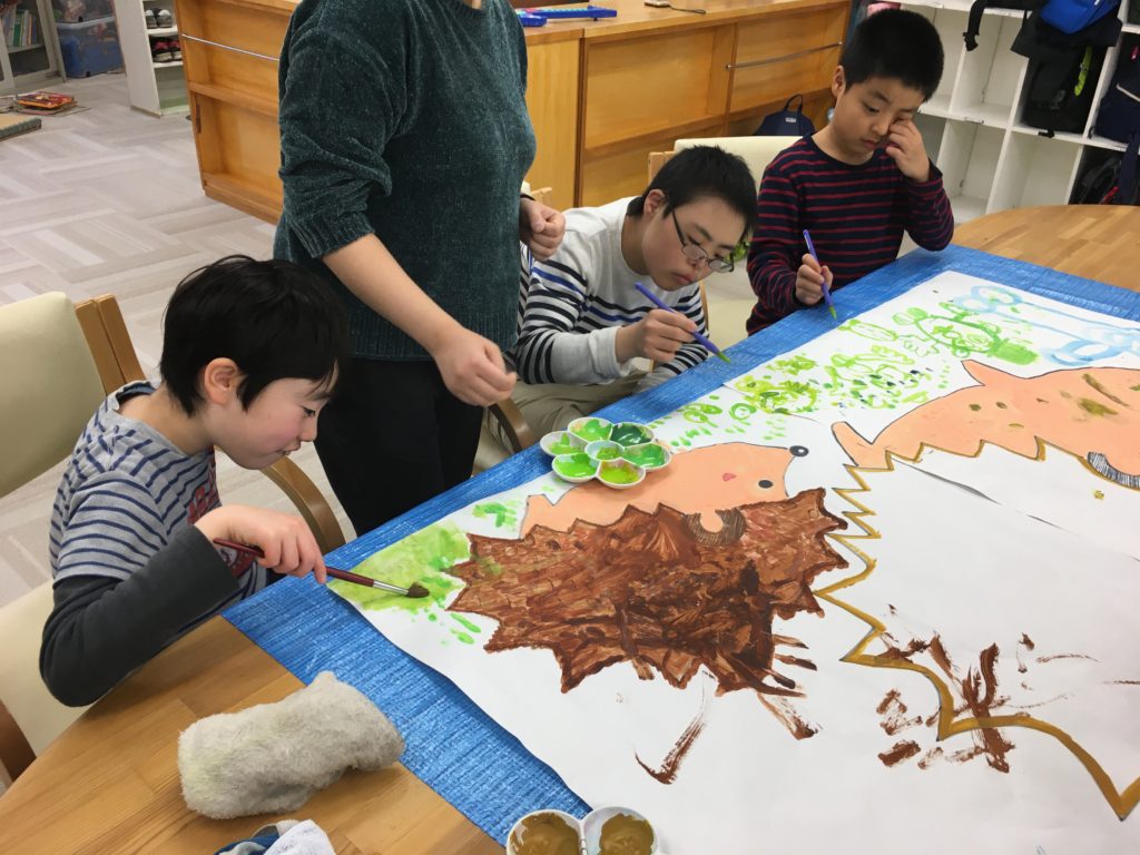 みんなで一つの作品作りに取り組みました!!にこにこもワンチームですから!