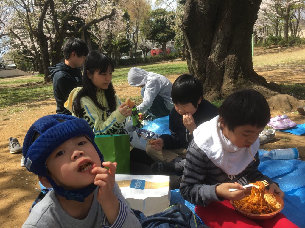 お花見しながらみんなでご飯を食べたり、桜の下でみんなとスタッフもジャーーンプ!!