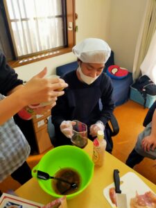 まずはチキン班の様子。スペースの都合やコンロの都合で、にこんちに移動して作りました。