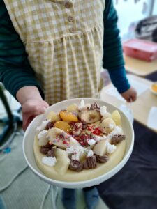 調理したお昼を食べた後、午後にはみんなで出し物大会。