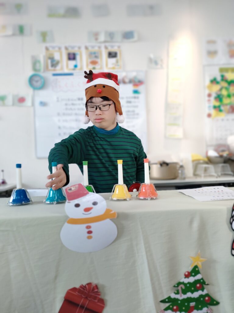 ハンドベル、手品、ダンスなどをして盛り上がったクリスマス会でした。