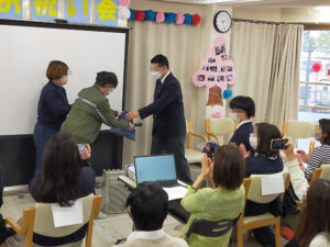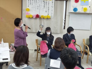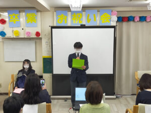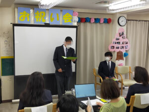 社会人になるにあたっての決意や、にこにこの会での思い出をスピーチしてくれました。