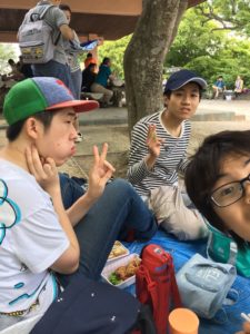 山頂へ到着しレジャーシートを広げてお昼ご飯!!