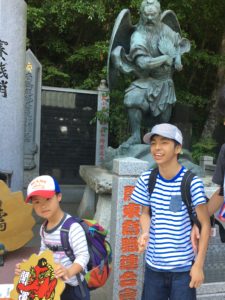 ケーブルカーに乗って高尾山駅へ一気に登ります。高尾山のケーブルカーは日本一の傾斜を駆け上るケーブルカーだそうです。6分ほどかけて高尾山駅到着。