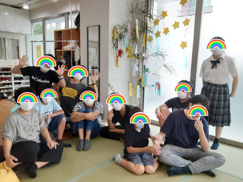 短冊に、願い事を書いてもらったり、流れ星を作ってもらったりとありがとう!願い事の中には「ハンバーグが食べたい」と書いていたり、「受験受かりますように」と書いている子も。皆の願いが叶いますようにと心を込めて飾りました。