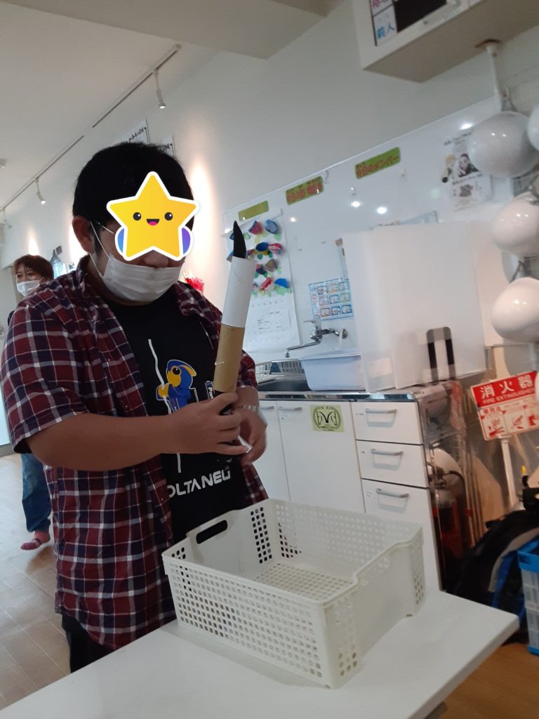片手だけの作業?なので結構難しい。この剣もくねくねしているので難しい。しかし、ふくふくの子どもは賢いので、かごを動かしたりしてすくい上げてゴールへ向かってダッシュ! 頭いいよね。器用だよね。と感心している櫻井でした!