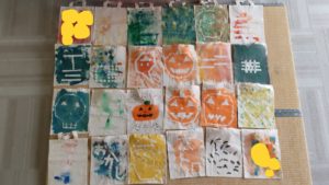 例年だと紙袋にシールなどを張り付けて作っていたお菓子を入れるバック…