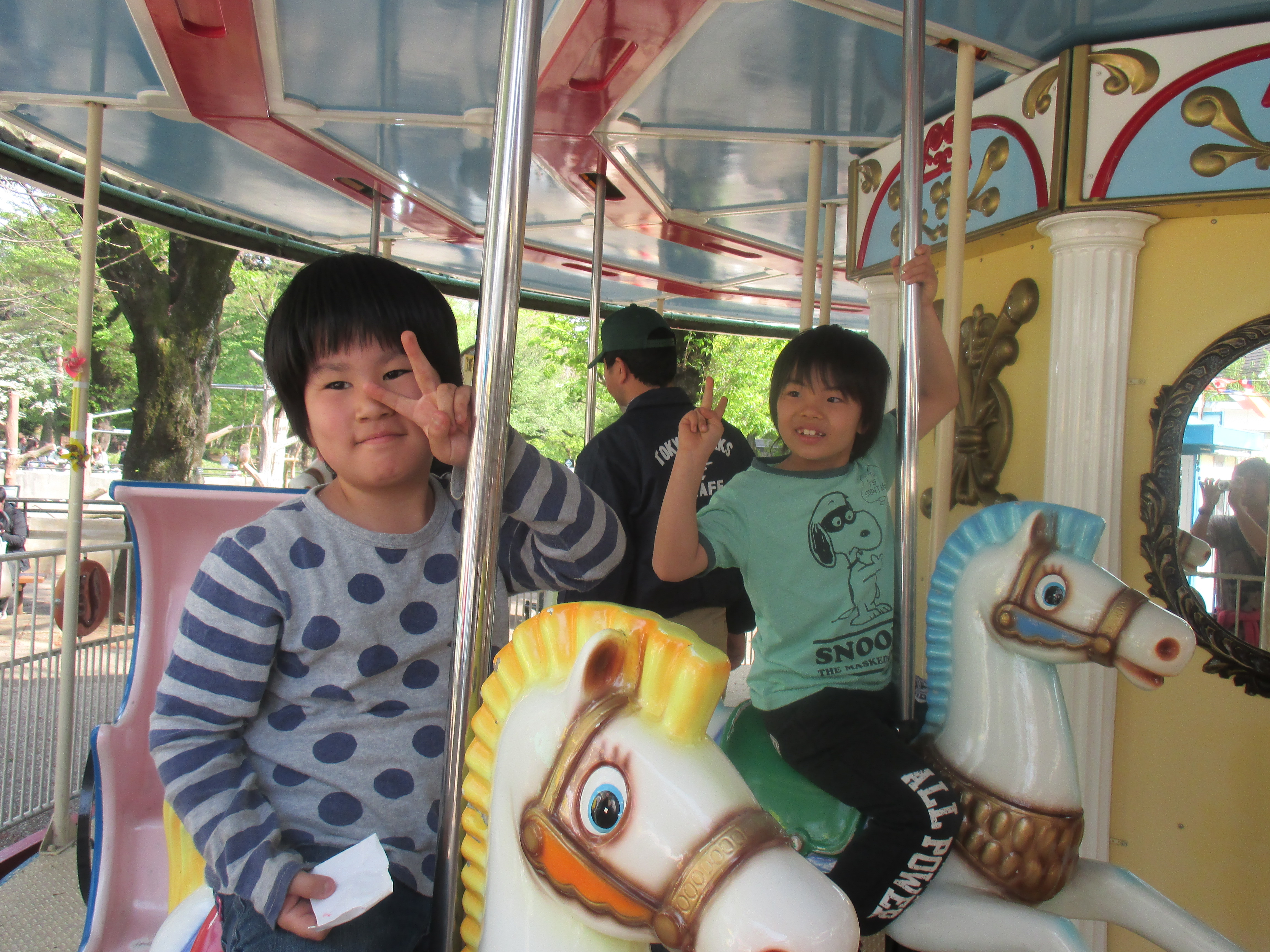 そして小学生のもう一つのお楽しみは園内のミニ遊園地、自分たちでチケットを購入して乗りたいものを選びます。