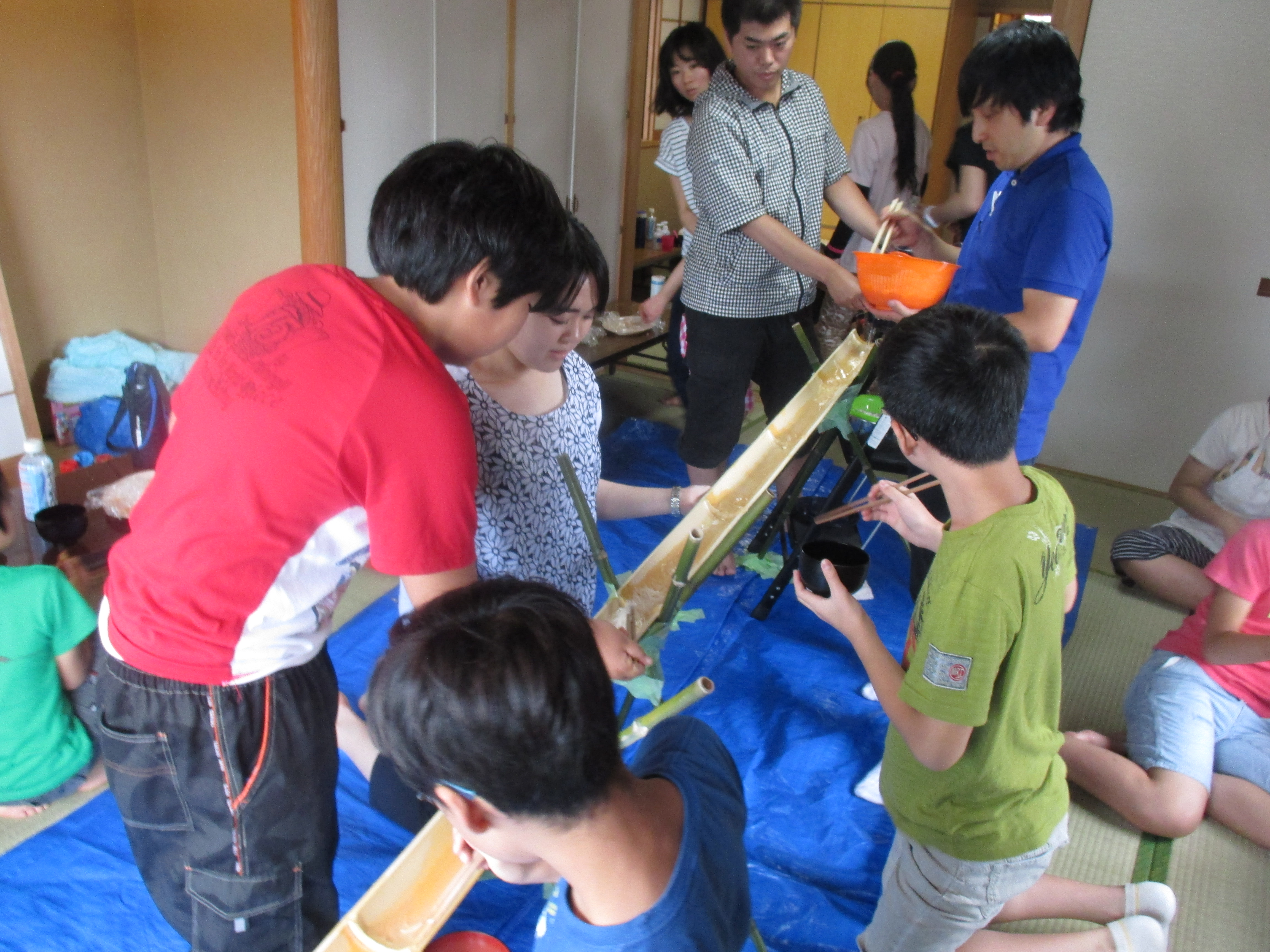 今回はにこんちにて本物の竹を使った本格的な流しそうめんをやりました!!